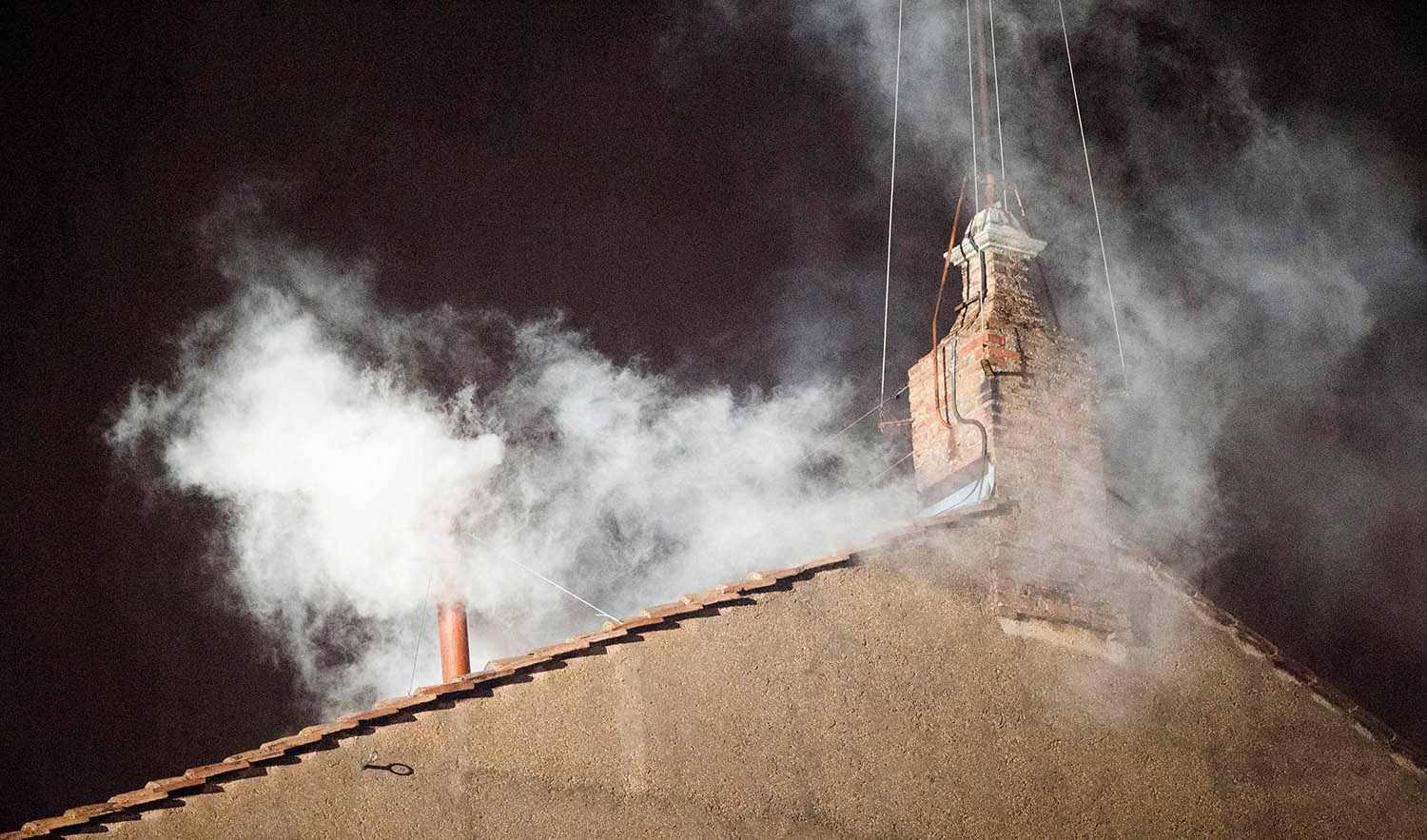 دووکەڵی سپی لە دووکەڵکێشی کەنیسەی سیستین بەرز دەبێتەوە و ئەمەش واتای ئەوەیە پاپای نوێ هەڵبژێردرا.